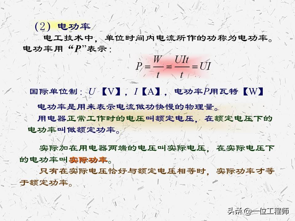 电功率的公式表达形式,及其当中出现的一些物理量的含义。