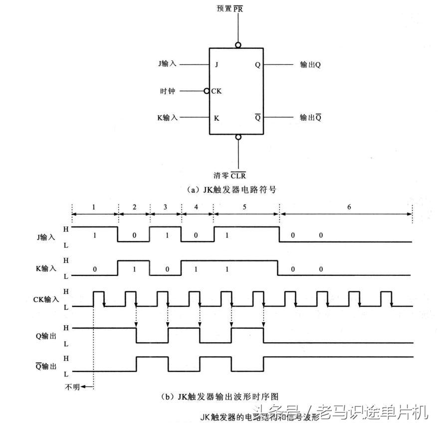 JK触发器的电路结构和信号波形见下图。