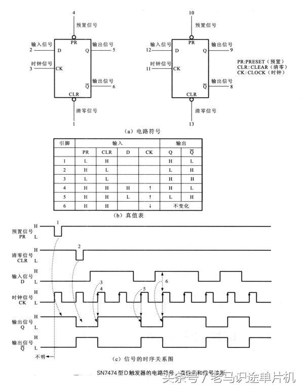 SN7474型D触发器的电路符号,真值表和信号波形见下图